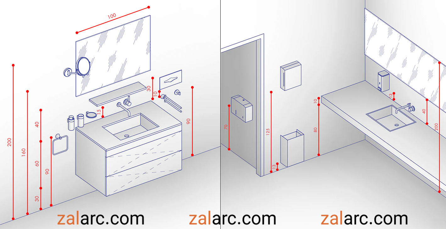 ابعاد استاندارد اکسسوریهای سرویس بهداشتی